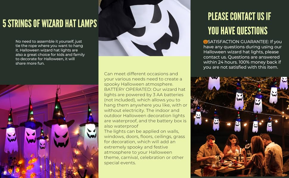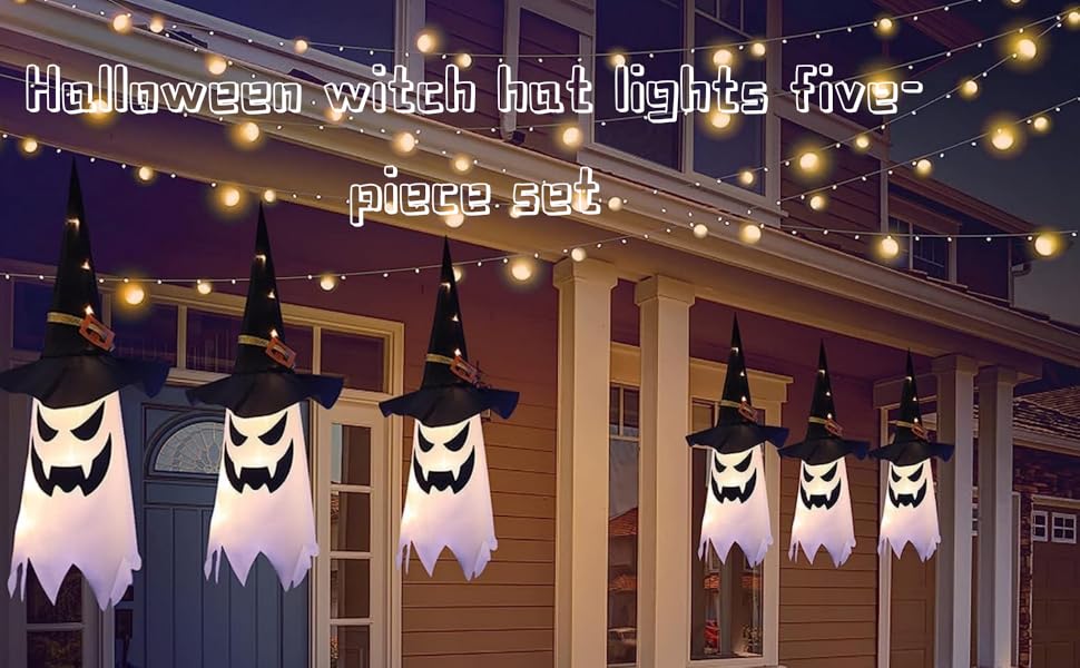 🎃 Wizard Hat Ghost LED String Lights | 5-Pack Halloween Spooky Lantern Decor