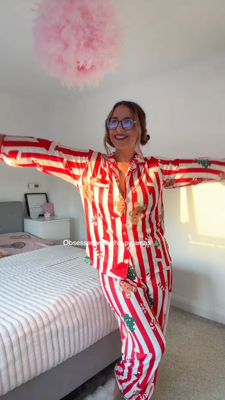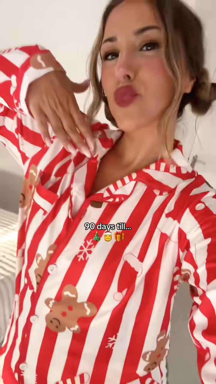 Festive red-and-white stripes with playful gingerbread prints! Collared design, cozy milk silk fabricβperfect for Christmas nights in or cute holiday photos.