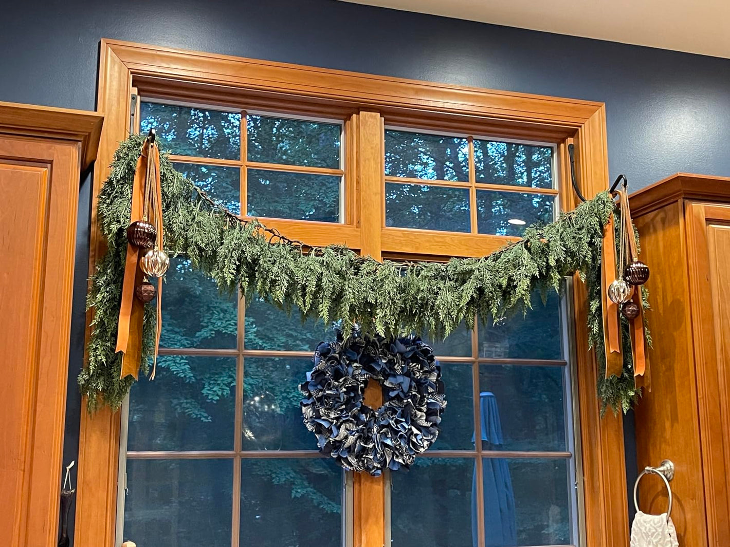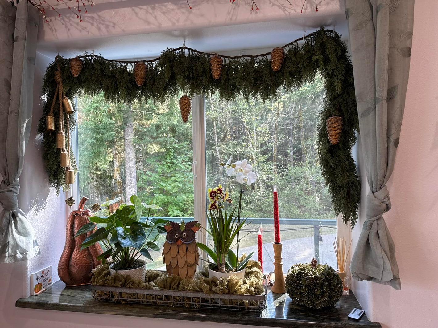 Yes! Made with non-toxic PE leaves and smooth, rounded pine cones. The inner is fully covered by foliage, so no sharp edges. Safe for curious pets or children (though we don’t recommend chewing on decorations!).