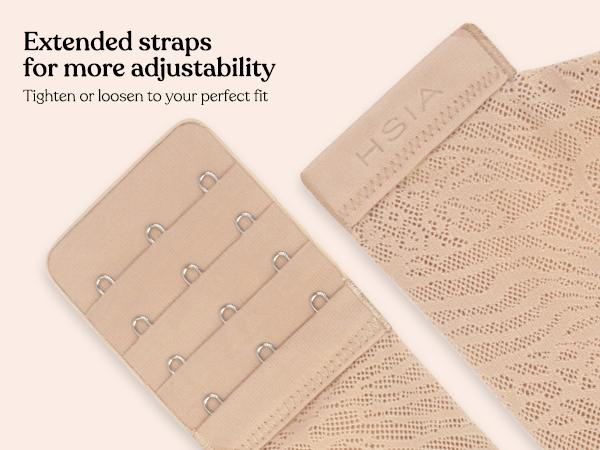 Straps & ClosureAdjustable straps with gold patent-pending hardware and a triple hook-and-eye closure for a perfect fit.