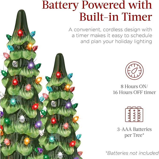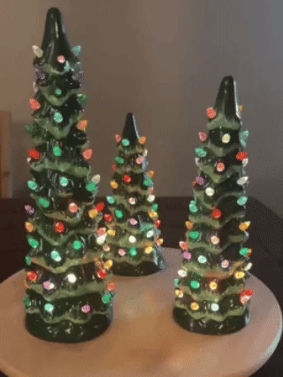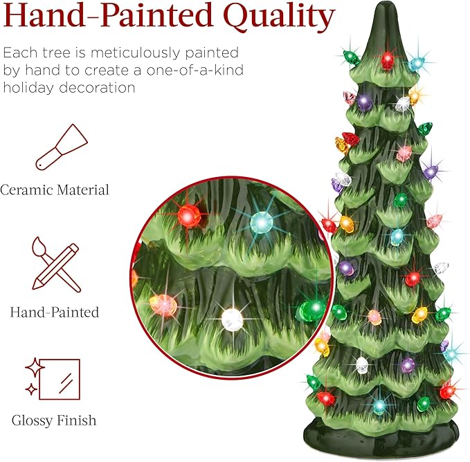 This ceramic Christmas tree set is meticulously crafted, featuring hand-painted colors and glossy finishes to create truly one-of-a-kind decor