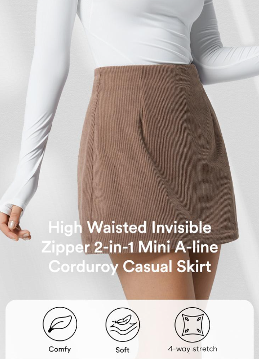 ✨ Corduroy 2-in-1 High-Waisted A-Line Mini Skirt | Invisible Zipper Slimming Casual Skirt