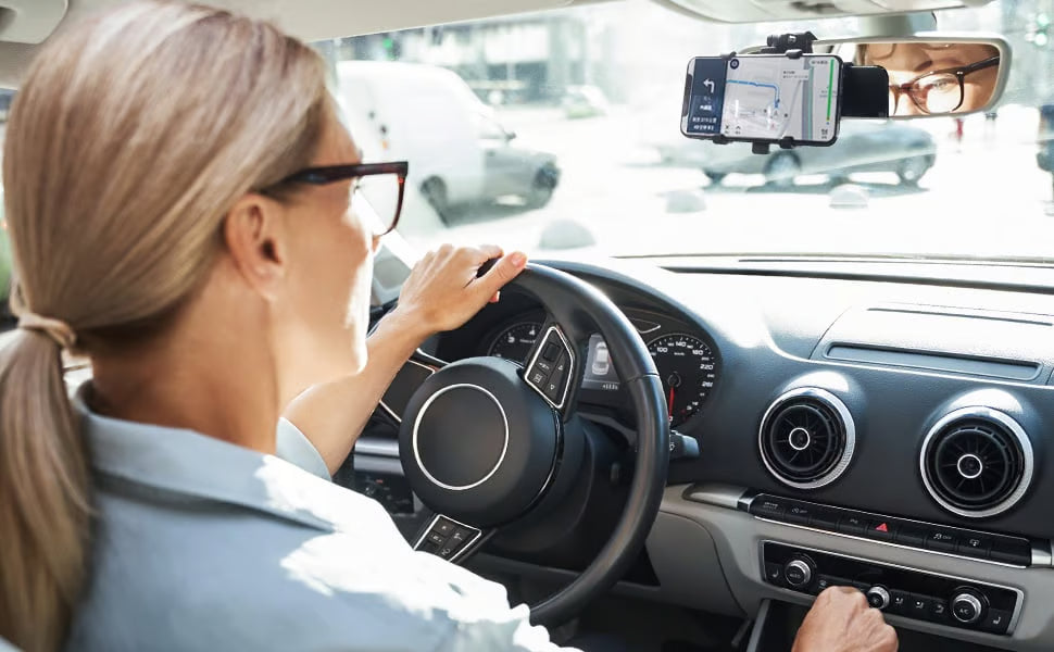 ✨This car mount allows you to view your phone at eye level without blocking your view. No need to squint or twist your neck too much to see the GPS or phone interface. Makes driving safer and reduces eye and neck strain.