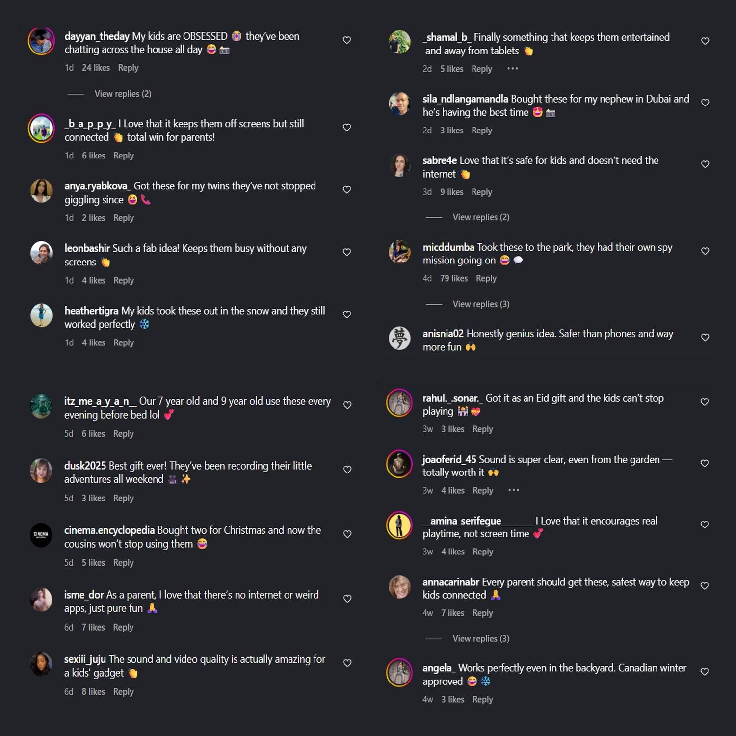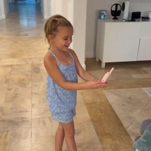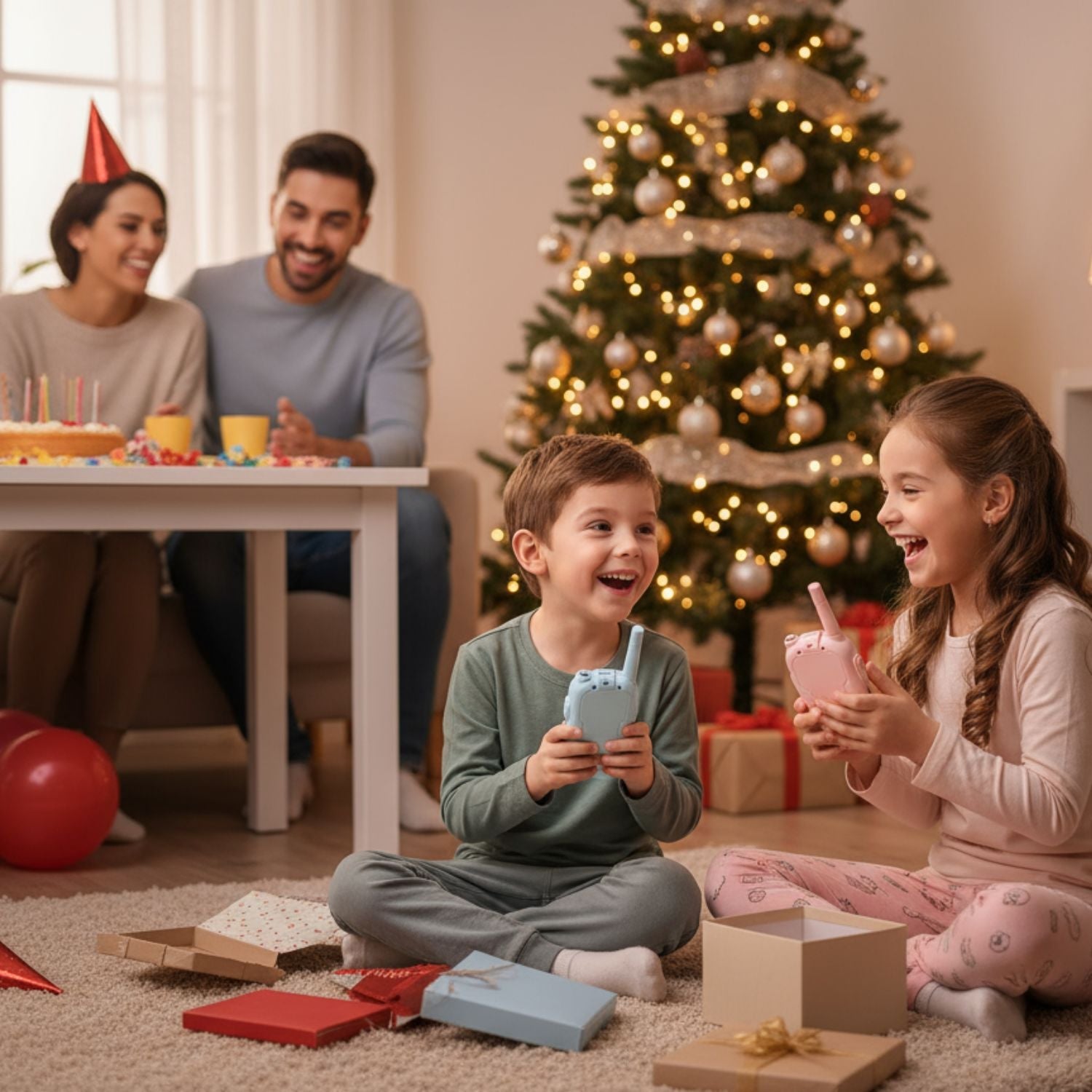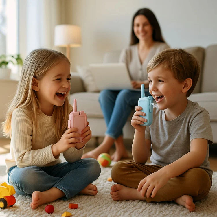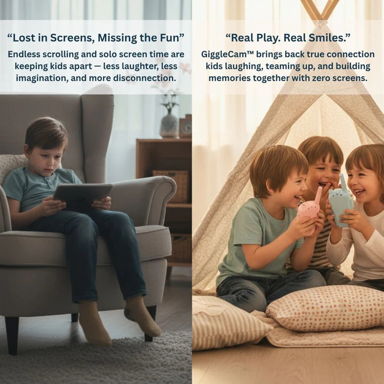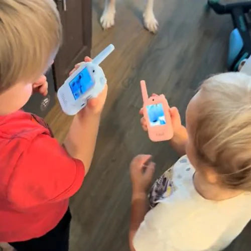 That’s where GiggleCam™ Video Talkies come in. Two kid-friendly video walkie-talkies that bring real laughter back. Kids use their faces and voices to connect, create games, and build confidence — indoors, outdoors, or across the yard.