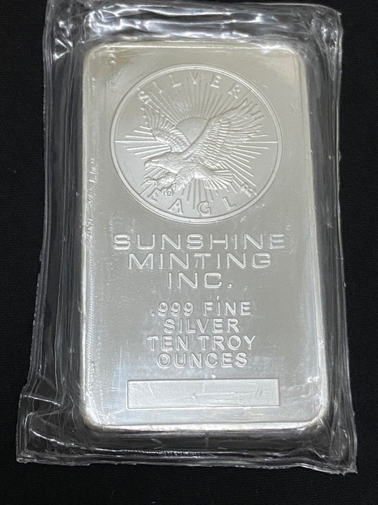 SECURE YOUR WEALTH WITH 10 OZ SUNSHINE MINT SILVER BAR – .999 FINE, TRUSTED, ANTI-COUNTERFEIT