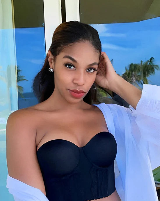 Before and after shots reveal how the bra smooths out back bulges, delivering a clean, streamlined look that enhances confidence in backless dresses.