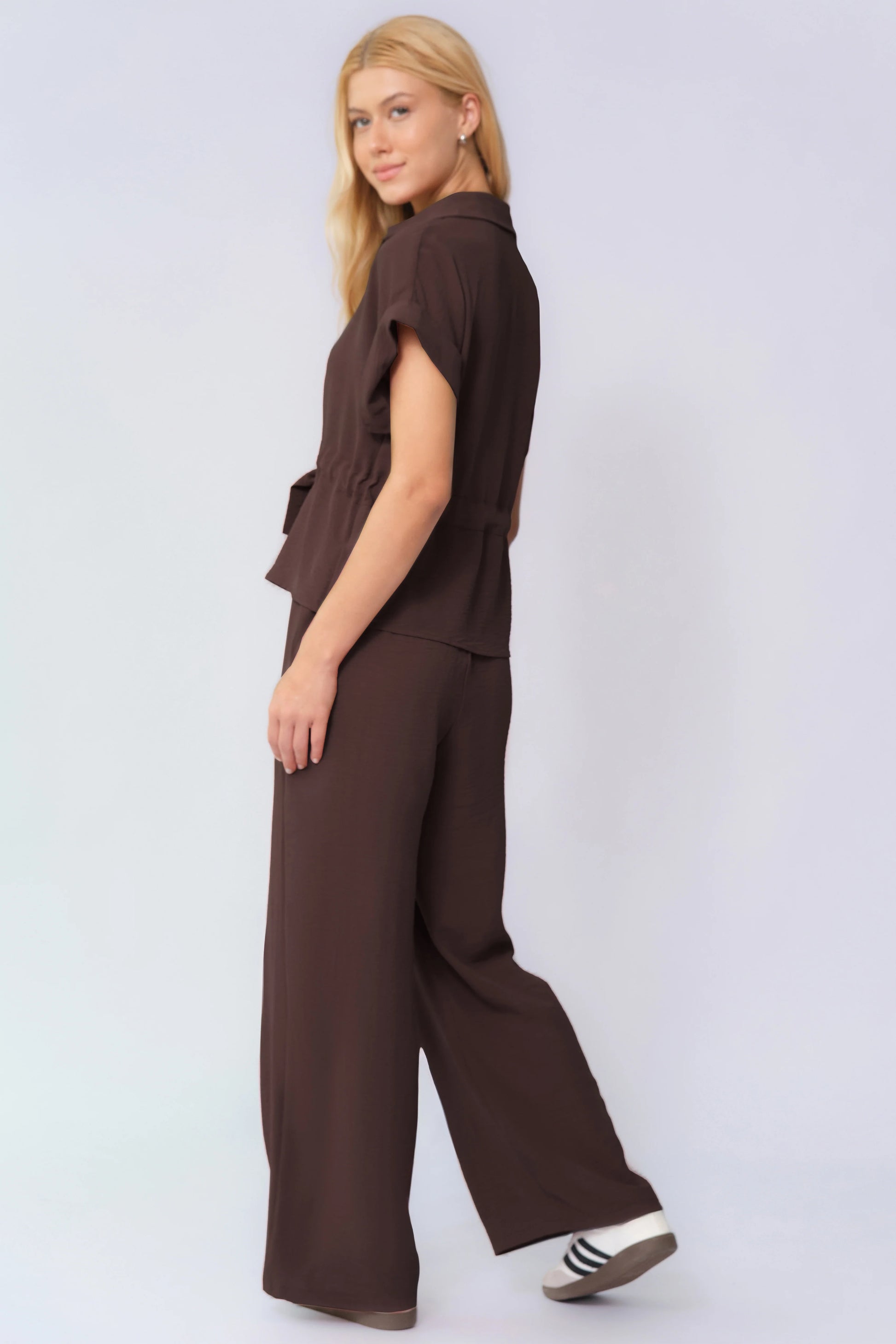 This relaxed yet polished collared top and wide-leg trouser set offers timeless versatility for work 💼, weekends 🌞, and everything in between.