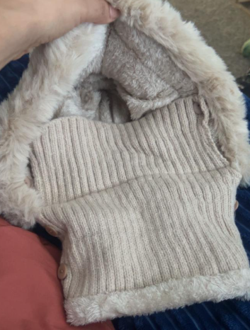 A: The hat features a soft fleece lining inside. This makes it feel soft and skin-friendly, adding to the comfort and warmth without being heavy.