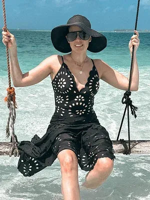Detachable Skirt Versatility: Pair the skirt for modesty or remove it to reveal a sleek one-piece cut – perfect for poolside lounging or coastal café stops.