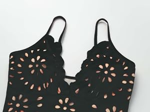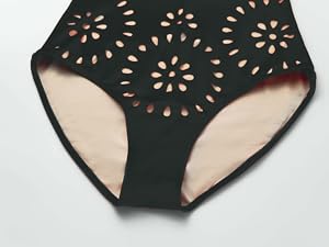 Petal-shaped cutouts accentuate the waistline, creating a 5-pound slimming effect